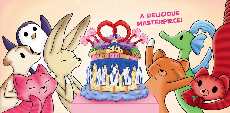 Frederick and Roger are delivering a cake to Herbert the Hedgehog, but he lives so very far away. Stopping for directions, they exchange pieces of cakes for help and sweet treats, not noticing their delicious delivery is getting smaller and smaller… When they arrive at Herberts and find the cake is almost gone, they must come up with a fast fix. What can the two friends do to keep their customer happy? Sweet-seeming characters and tasty illustrations bring this tempting tale to life.